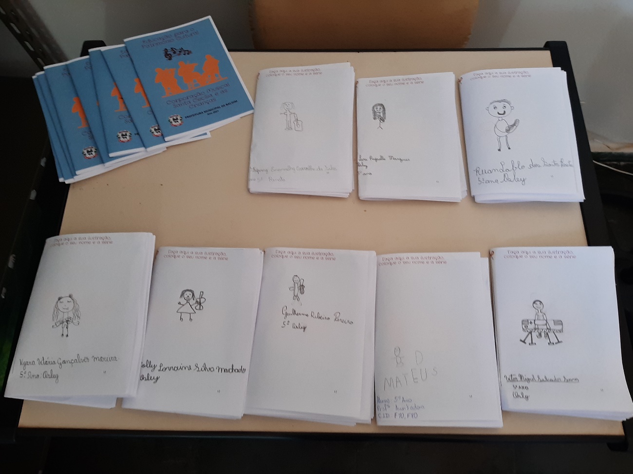 A cartilha ficou com os alunos e entre as atividades sugeridas, havia uma específica para finalização da ação, a qual foi proposto aos alunos fazer uma pesquisa e ilustração de um instrumento musical escolhido por eles e ao final, entregar a ilustração na Secretaria Municipal de Educação, Cultura, Esporte e Lazer, para a Diretoria de Cultura, Sra. Nadir Gonçalves Martins Santos.