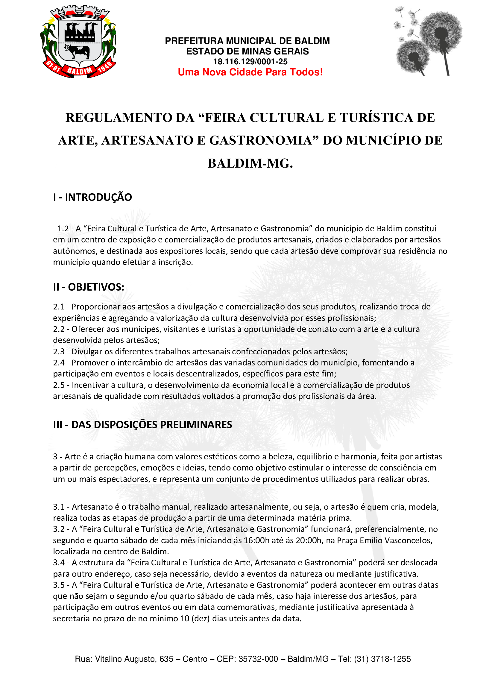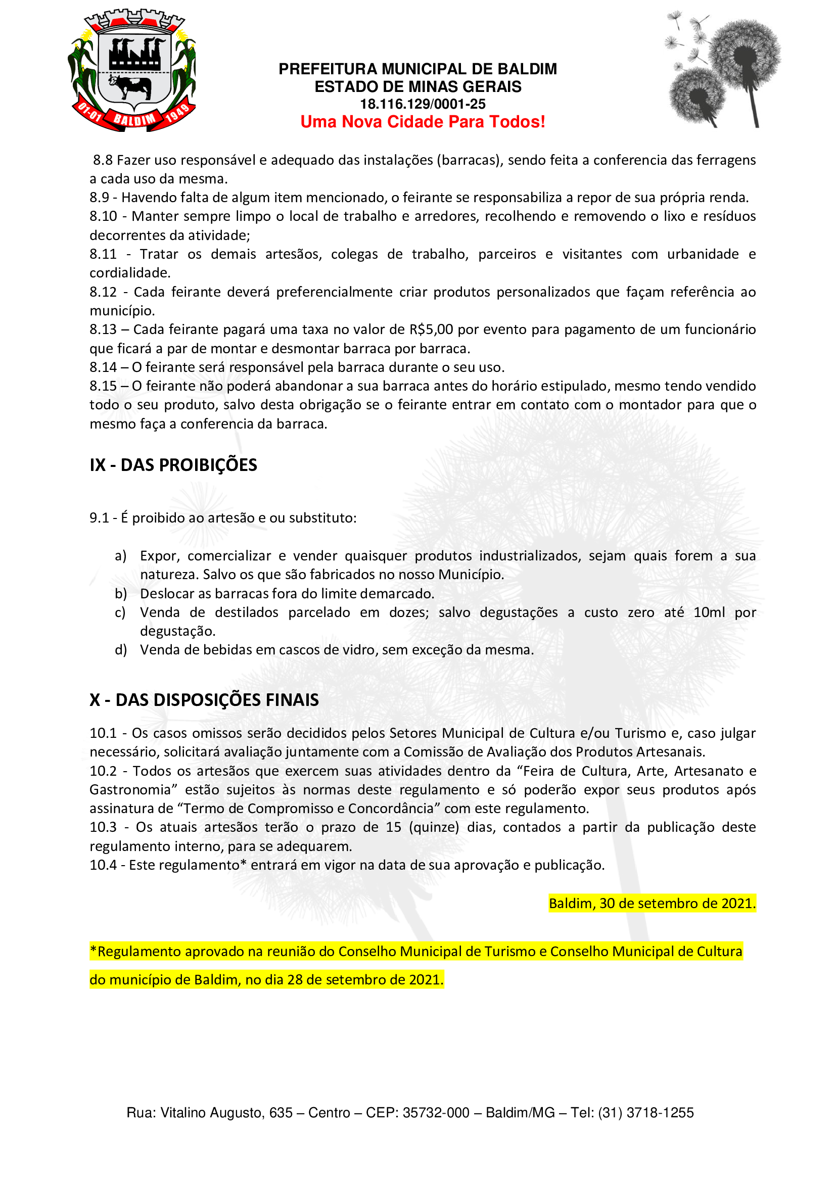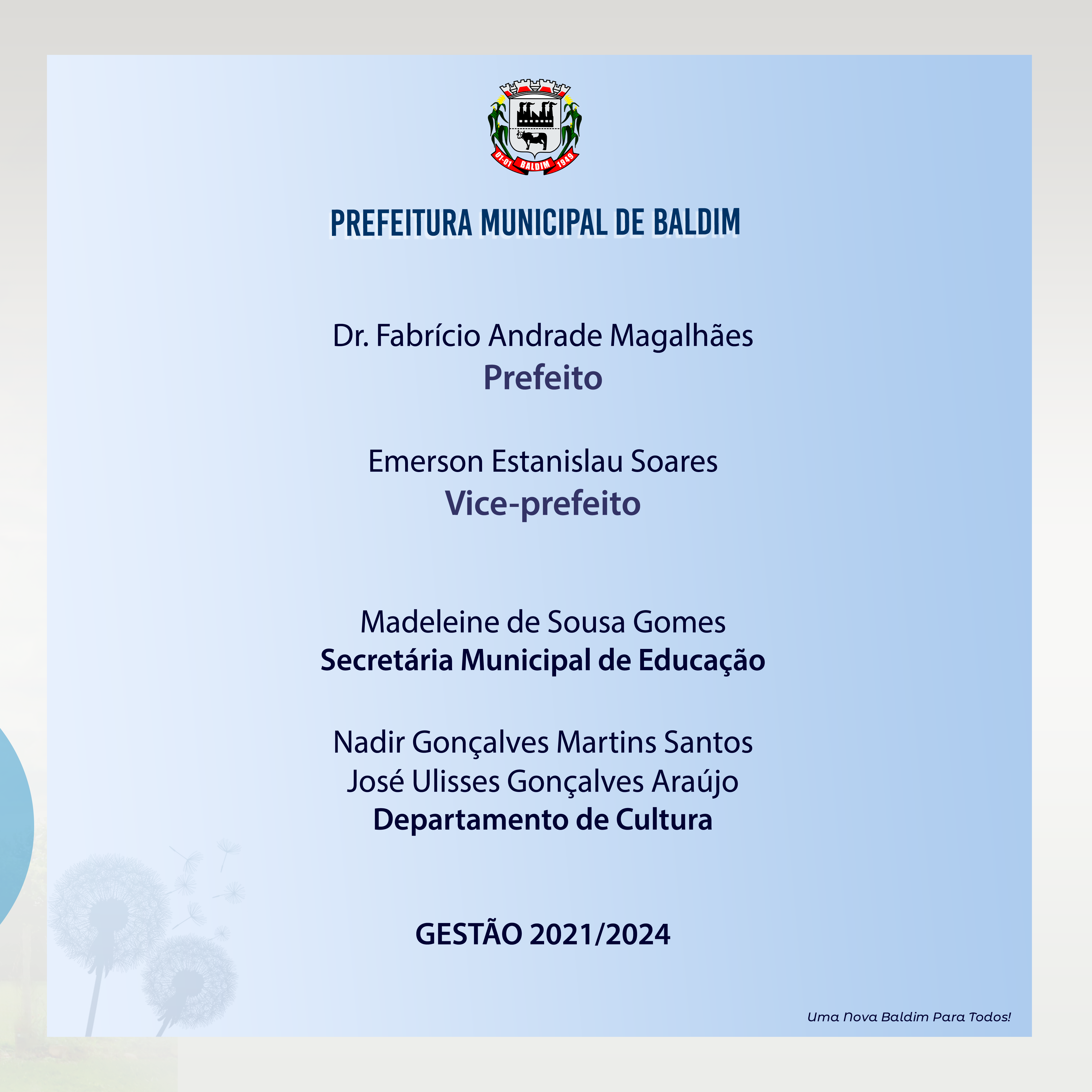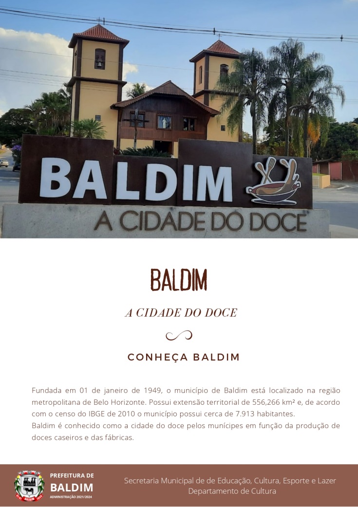 Os exemplares do panfleto “Baldim – A Cidade do Doce” se encontram disponíveis na Secretaria Municipal de Educação, Cultura, Esporte e Lazer para a comunidade.