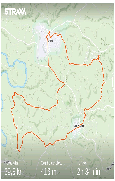 No sentido à MG 323, em direção as localidades de: São Vicente, Fazenda Gameleira, Gentio, Santa Luzia e a finalização do percurso foi no referido local de concentração e partida.