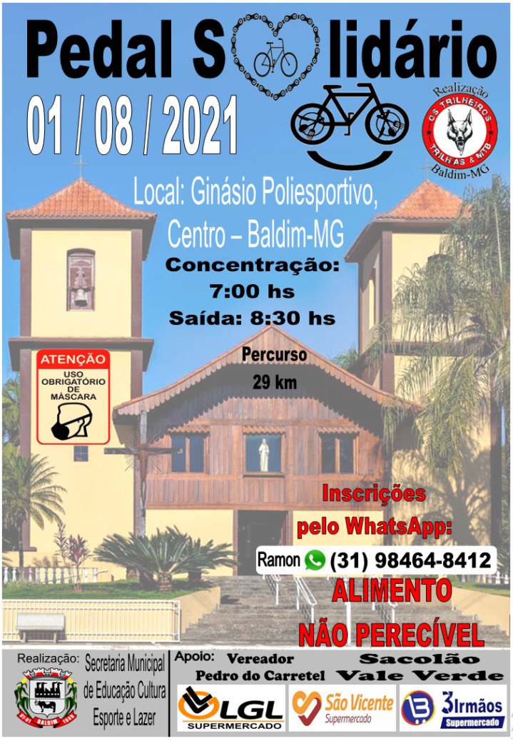 Aconteceu no município de Baldim/MG, no dia 01 de agosto de 2021, a ação esportiva, Pedal Solidário.