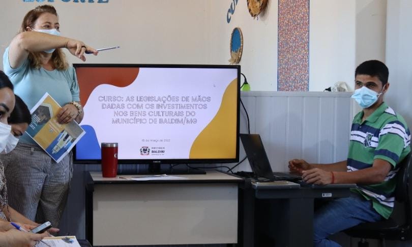 No dia 15 de Março de 2022, foi realizado na Secretaria de Educação, Cultura, Esporte e Lazer, do município de Baldim/MG, o curso: “As Legislações de Mãos Dadas com os Investimentos nos Bens Culturais do Município de Baldim / MG”, ministrado pela Diretora de Cultura, Sra. Nadir Gonçalves Martins Santos.