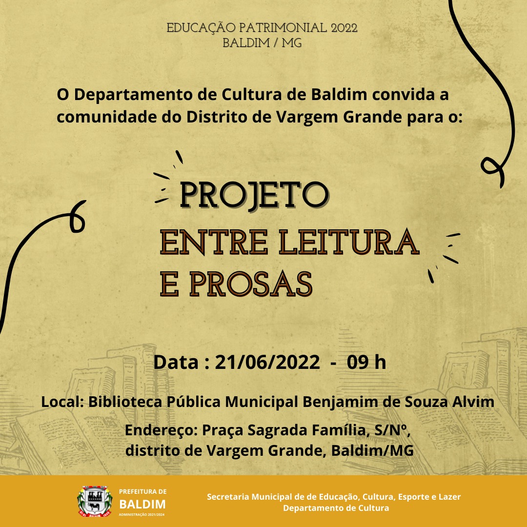 O Departamento de Cultura de Baldim realizou no dia 21 de junho de 2022 o Projeto "Entre Leituras e Prosas".