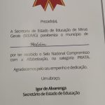 Na última terça-feira, 8 de julho, a cidade de Baldim foi oficialmente reconhecida pelo Ministério da Educação com o Selo Prata do Compromisso Nacional Criança Alfabetizada. A entrega do selo aconteceu na sede da Superintendência Regional de Ensino de Sete Lagoas e contou com a presença da equipe da Secretaria Municipal de Educação.
